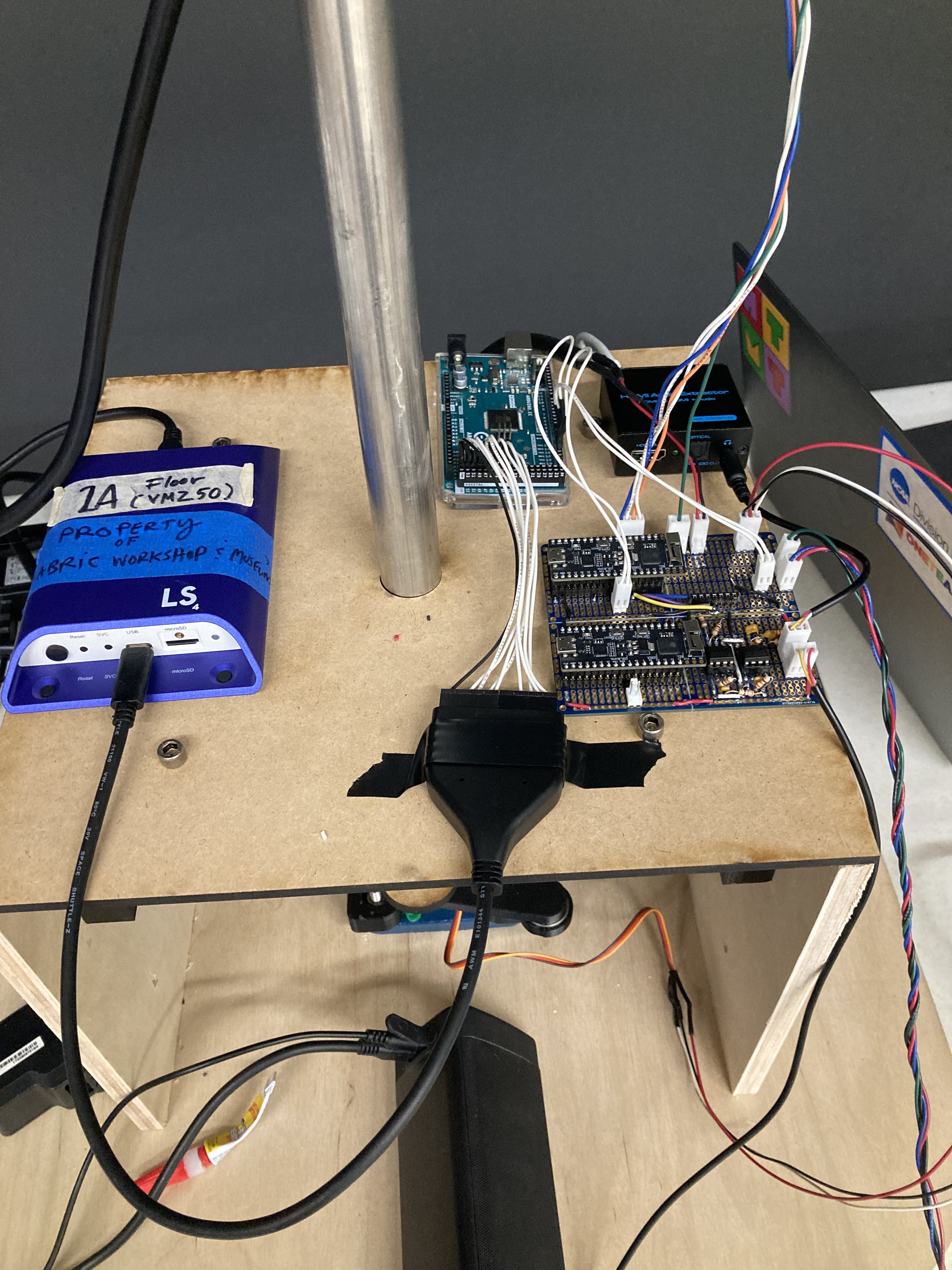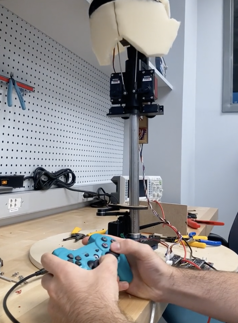 Ollie is an animatronic puppet I built for local philly artist Jayson Musson, Ollie is capable of person detection, using a TensorFlow Lite ML model tailored specifically for the Raspberry Pi. He follows museum visitors and addresses them with unique voice memos based on the number of visitors. Ollie has six servo motors, 4 microcontrollers, a custom circuit for real time lip-syncing based on the audio signal, and a media player for storing the voice memos. He was fabircated using 3D-printing, laser-cutting, CNC machining, and of course some minor jerry-rigging.